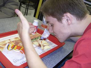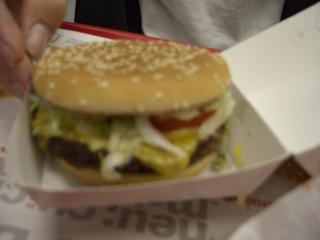 Tobi hat sich einen Big Mäc bestellt der aussieht, als wäre er durchaus imstande, das Lebensmittelvergiftungsrisiko um 500% zu erhöhen.