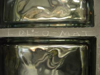 Mit einem Schlüssel kratzt er künstlerisch (da hoch anspruchsvoll) den LoL-o-Mat-Schriftzug in die Spachtelmasse.
