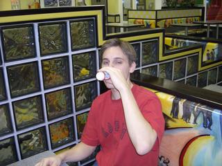 Marian verzehrt sein Actimel. Offensichtlich genießt er es.