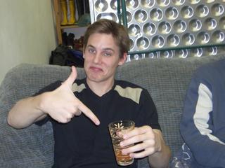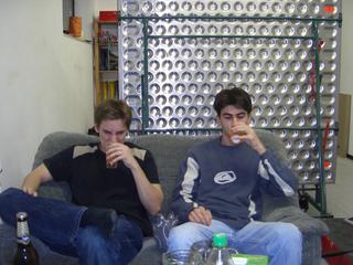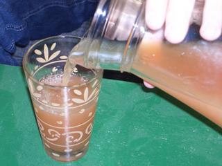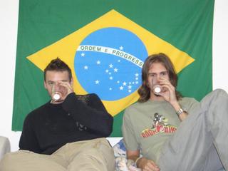 Im Namen von „Ordnung und Fortschritt“ trinken Hendrik und Phil die rötliche Flüssigkeit.