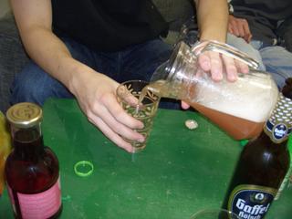 Die Tabletten haben sich aufgelöst und das Getränk wird wiedereinmal aufgeteilt.