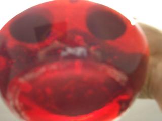 Von unten betrachtet erinnert das Bild an einen lustigen, blutverschmierten LoL-o-Mat-Smilie in Raserei.
