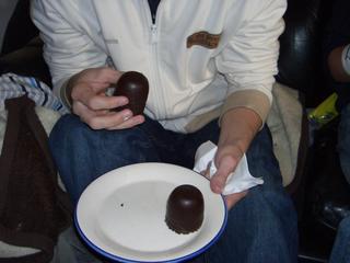 Marian hat noch immer zwei der Riesen Schoko-Küsse zu bewältigen. An seinen Händen haftet erstaunlich wenig der weißen Zuckermasse.