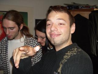 Als wir uns gerade zum Gehen entschlossen haben kriegt Kim von Phil einen Schoko-Kuss, im wahrsten Sinne des Wortes.