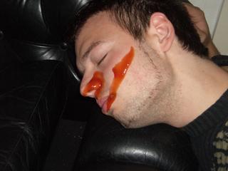 Kim, jahrelanger Tennisspieler und Gossenschläger, zeigt sich unbeeindruckt und verpasst Phils Gesicht einen neuen Anstrich in Blutrot.